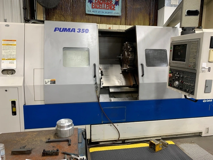 Our 1998 Daewoo Puma 350A offers a swing of 27.5", 44.1" machining length, 18" chuck size, and 40HP power. With a bar capacity of 3.58" and a max RPM of 3,000 RPM, this reliable machine can meet your turning needs.